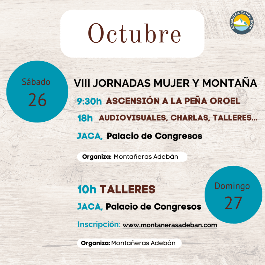 Enlace de la inscripción: https://www.montanerasadeban.com/actividades-adeban/viii-jornadas-mujer-y-montana-de-jaca/?preview=true